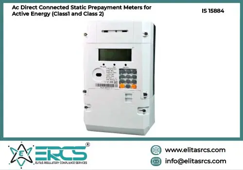 Mandate for ISI Mark Certification of AC Direct Connected Static Prepayment Meters for Active Energy (Class1 and Class 2) (IS 15884) :